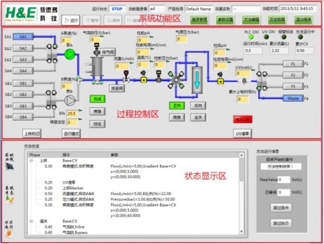 QuikSep Prep全自動(dòng)層析系統(tǒng)軟件符合新版GMP規(guī)范,采用圖形化界面、全自動(dòng)操作,簡明扼要,任何操作及狀態(tài)均可實(shí)時(shí)顯示在主界面狀態(tài)欄中,自動(dòng)化程度高。結(jié)合了大量的容錯(cuò)性設(shè)計(jì),貼合生產(chǎn)實(shí)際,降低了對操作人員的技能要求。參考圖: